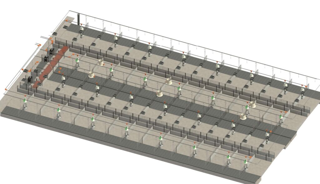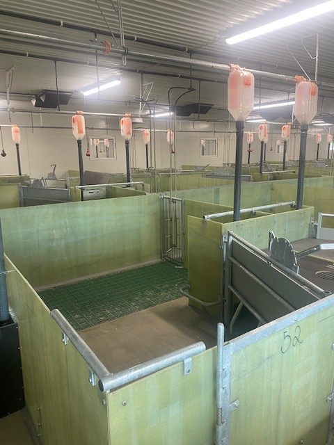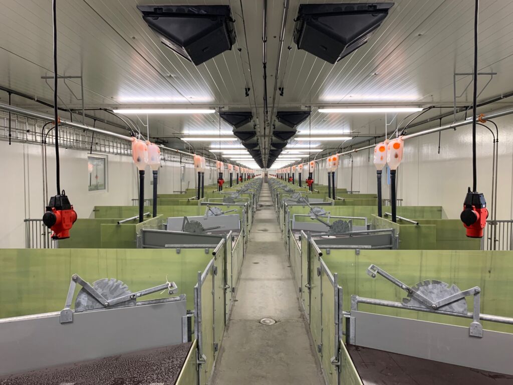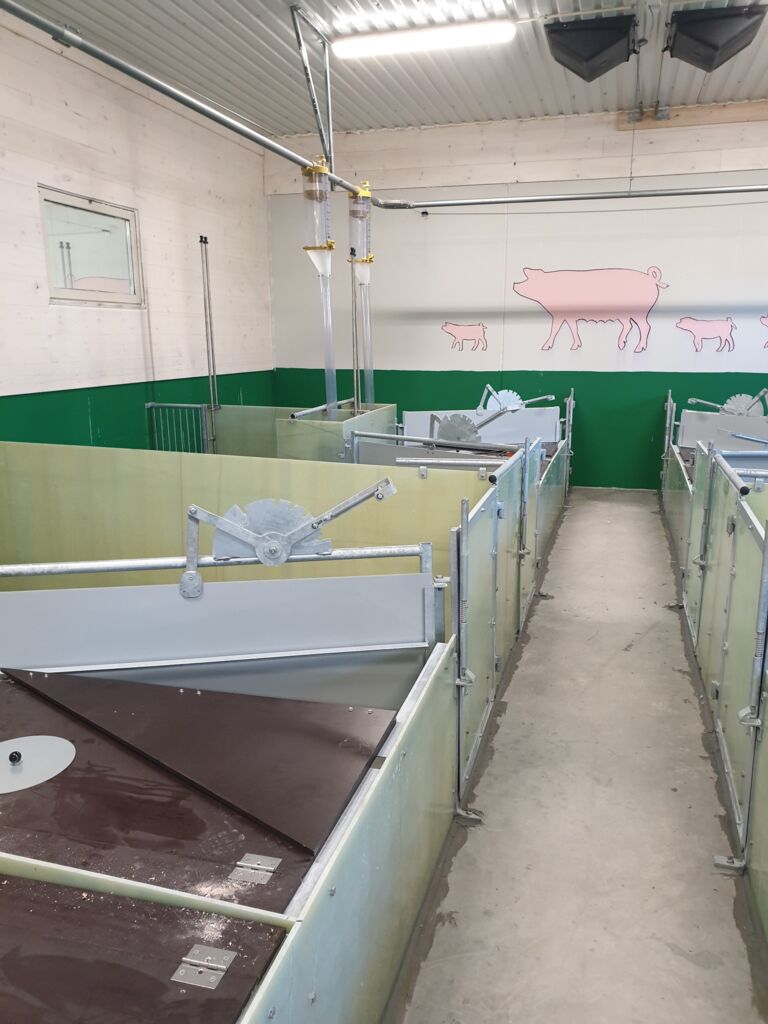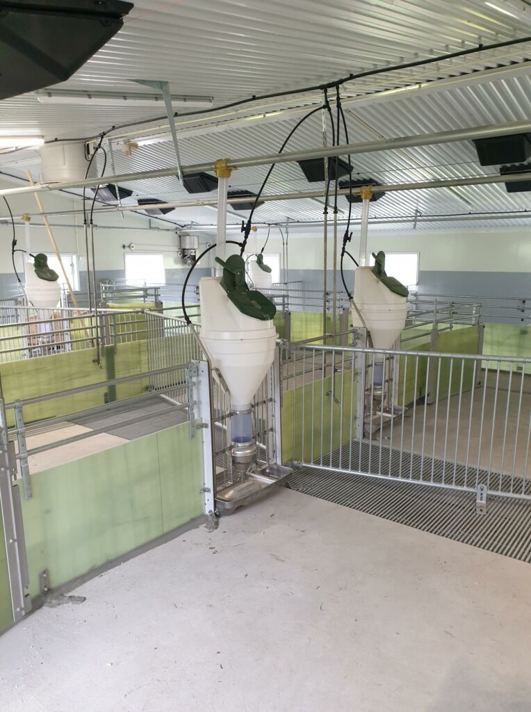 Hos Eskevik v/Skarnes har vi i sommer levert I-Mek i 2 nye smågrisavdelinger (16 binger pr rom).
