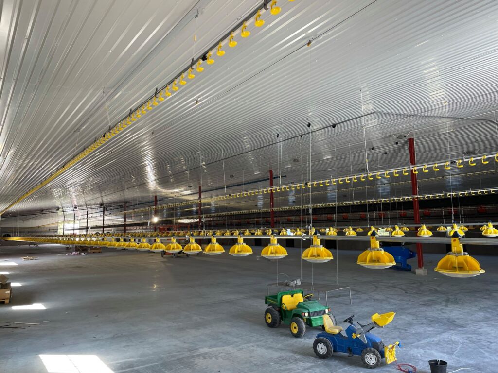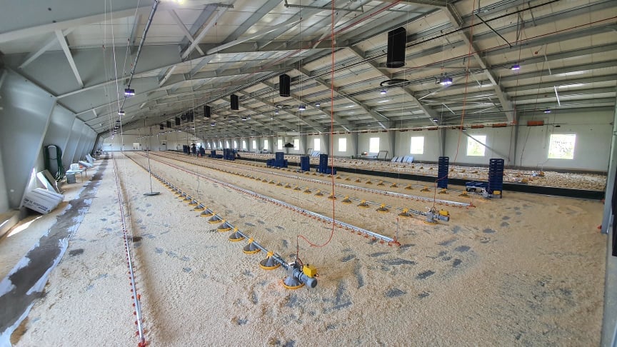 Hege Alice Gjerberg og Anders Degnes har bygd nytt hus til slaktekylling. Dyrerommet er på 30x90m. Vi har levert ventilasjon