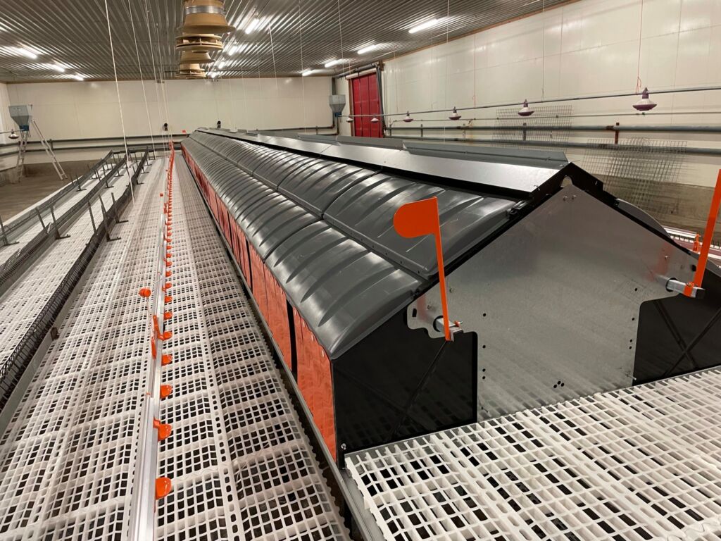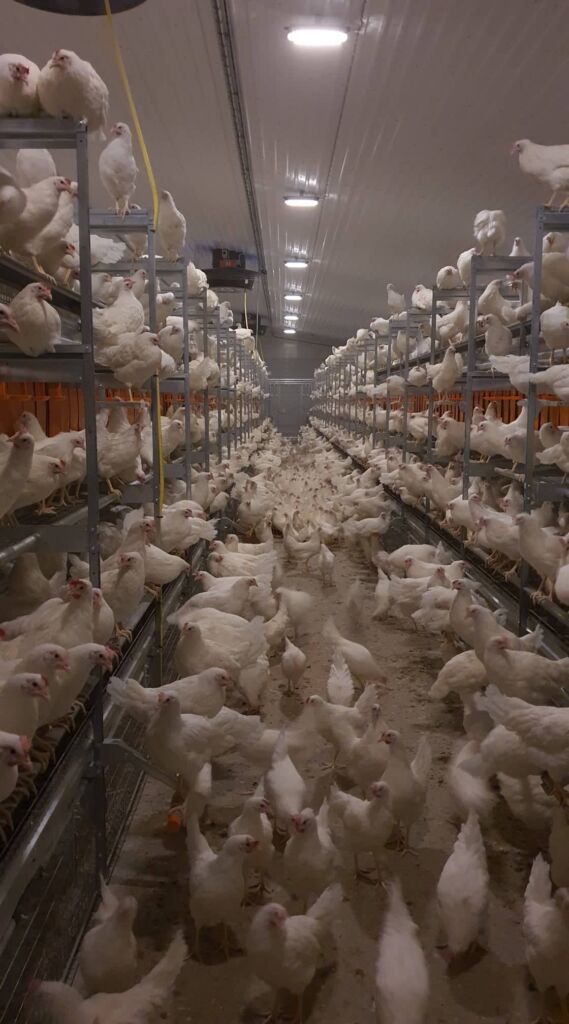 Vi har levert Natura Step innredning til 7500 verpehøner, ventilasjon, Incas dyrevekt, Zeus taklamper, luker til åpning ut til vinterhage,