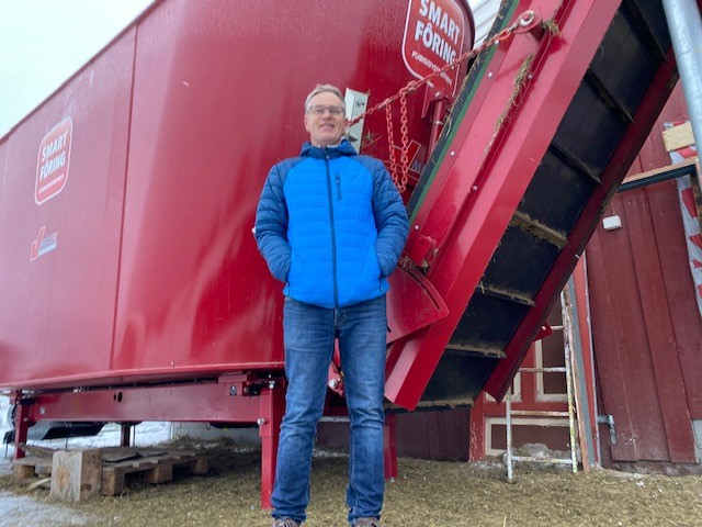 TOVIK: Hans-Emil Torbergsen i Tjeldsund kommune har nylig tatt i bruk en ny fôringsløsning bestående av BvL kompaktmikser og Rollax