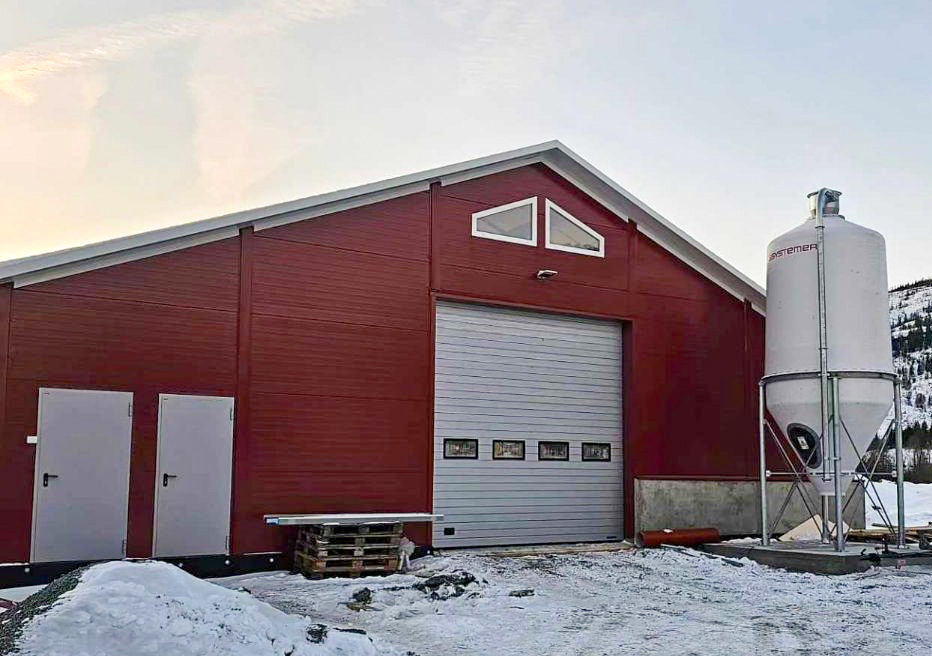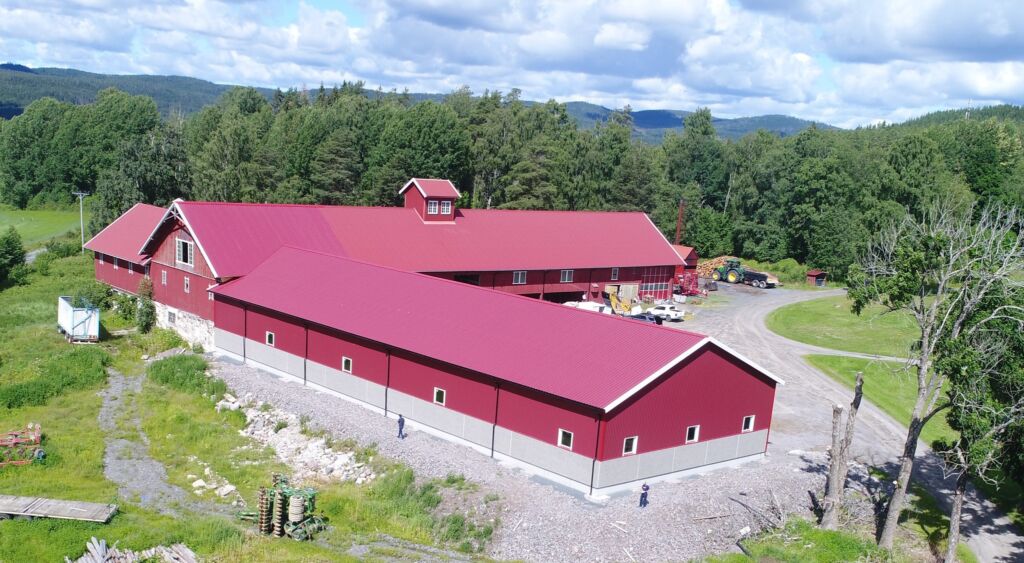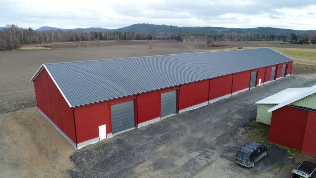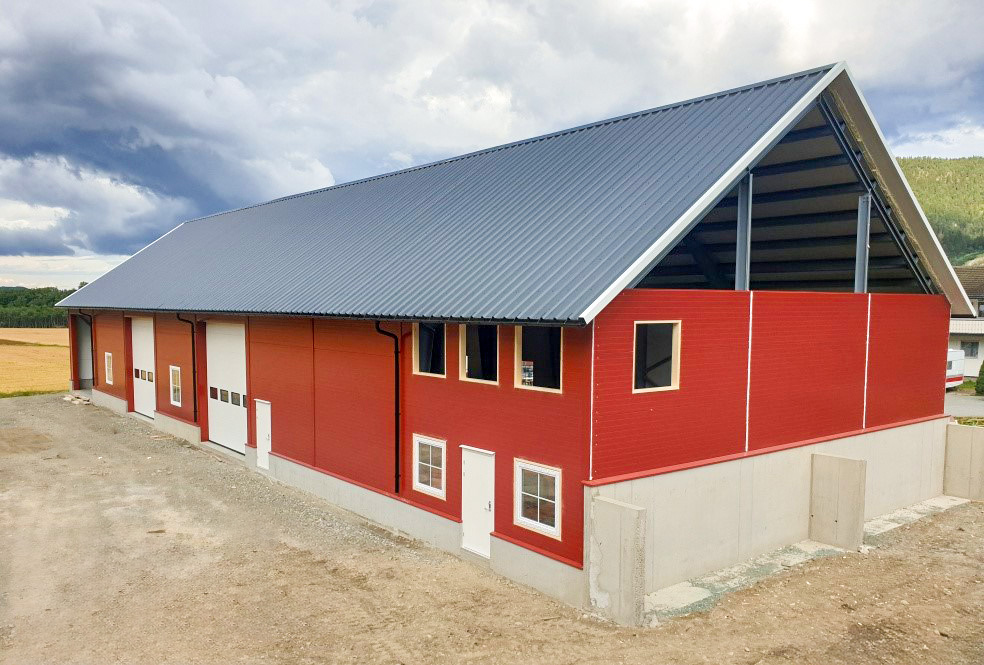 Fjøssystemer Bygg gratulerer Ole Bergli fra Bagn med nytt isolert lager. Bygget er satt om med stålbuer og sandwichpaneler, bygget