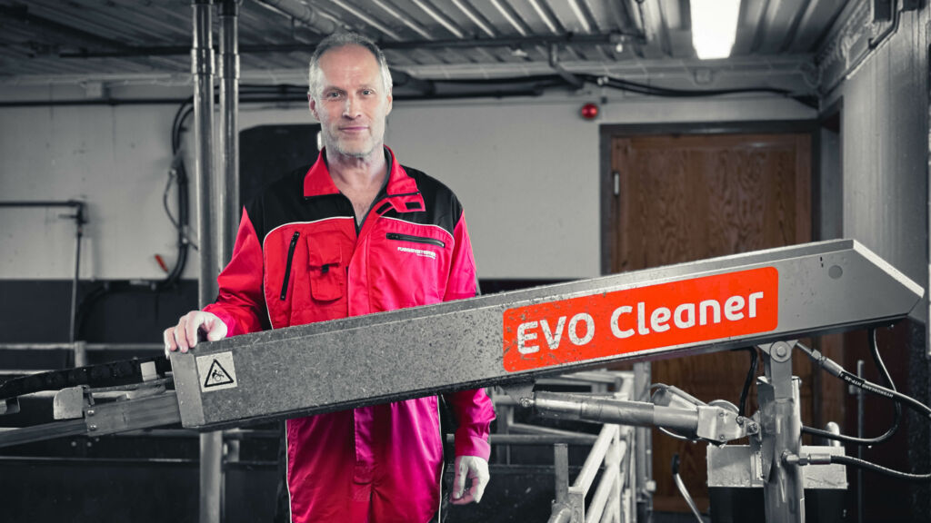 EVO Cleaner er en unik og patentert vaskerobot utviklet for grisefjøs. Roboten effektiviserer og muliggjør automatisk vask hele døgnet.