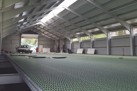 Hos Magnhild og Arne Bjørgen i Lom har vi levert MIK stepper plastrister med galvanisert stålbæring, og bingeskiller i nyrenovert