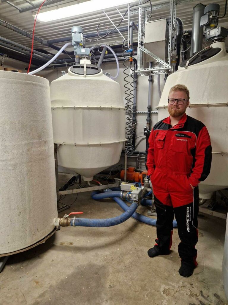 I 2021 oppgraderte Fridtjov Skjerve våtfôringsanlegget sitt i grisehuset under full drift.