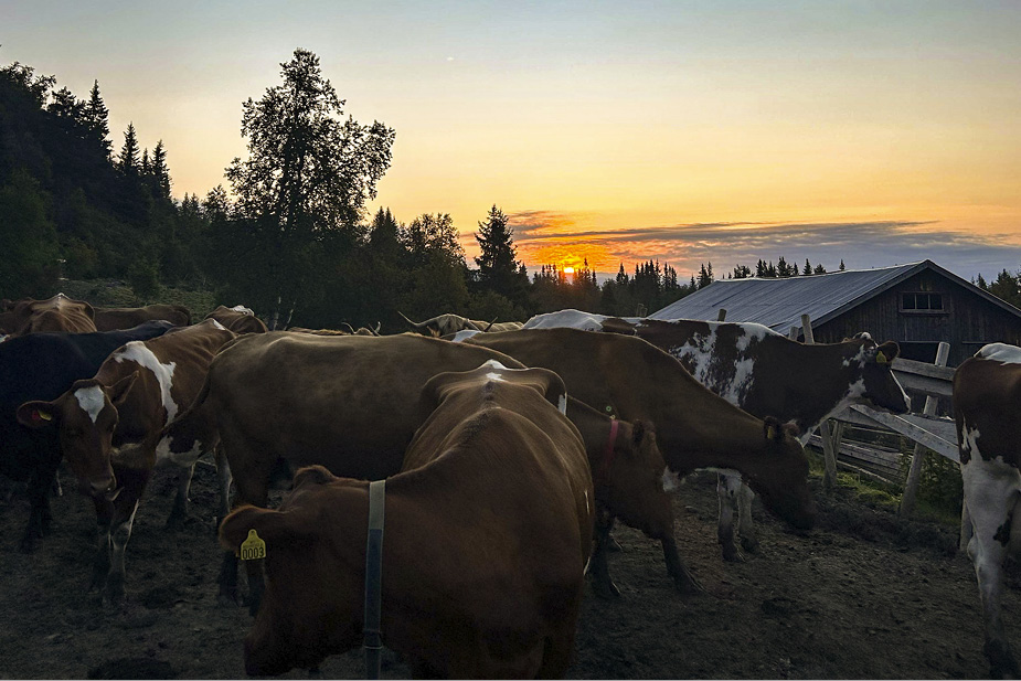 I juni mjølka Jostein og Inghild på Flø for siste gang i båsfjøset. Dyra vart sendt til fellessætra og riving