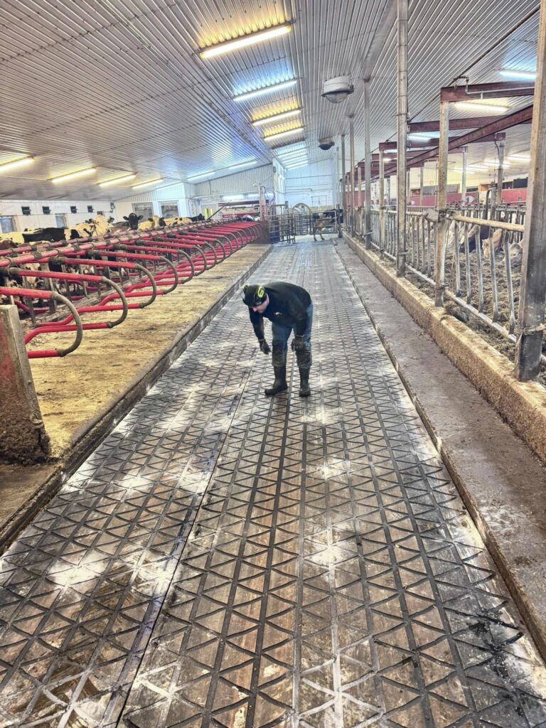 Det er en kjent sak at kyr som går på glatte eller harde gulv, blir utrygge. Når kua er utrygg,