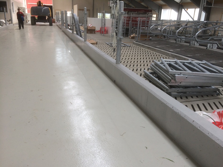 Epoxy på fôrbrett, fôrsentral og sosiale/tekniske rom i storfefjøs.