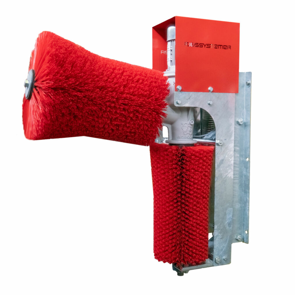 Dobbelbørsten er fjærbelastet, slik at kubørsten tilpasser seg dyr med ulik størrelse.