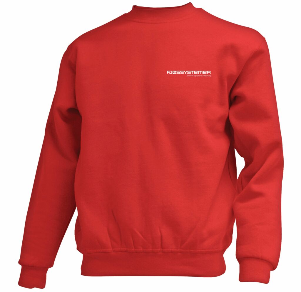 Meget god sweatshirt. 2-lags ribb med lycra i hals, linning og ermåpning. Flosset innside. Farge: Rød Kvalitet: 65% bomull 35% polyester