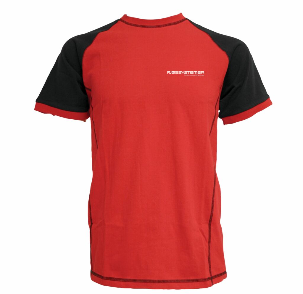 Unisex T-shirt med kontraster. Forhåndskrympet. Farge: Rød Svart Kvalitet: 100% kjemmet bomull 160 gram/m²