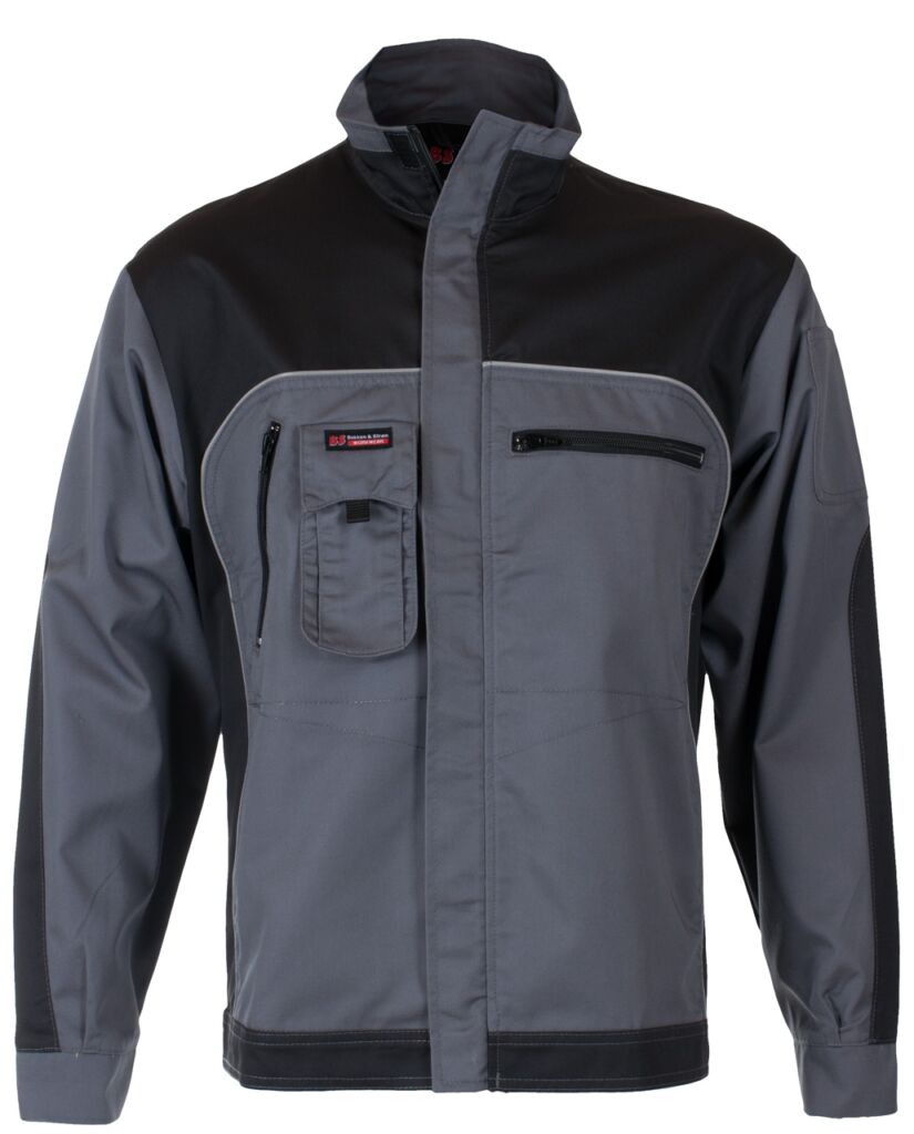 Jakken i profilserien har fold i rygg, stikklommer, brystlommer og mobillomme. Glidelås med klaff i front. Trykknappregulering rundt håndledd og