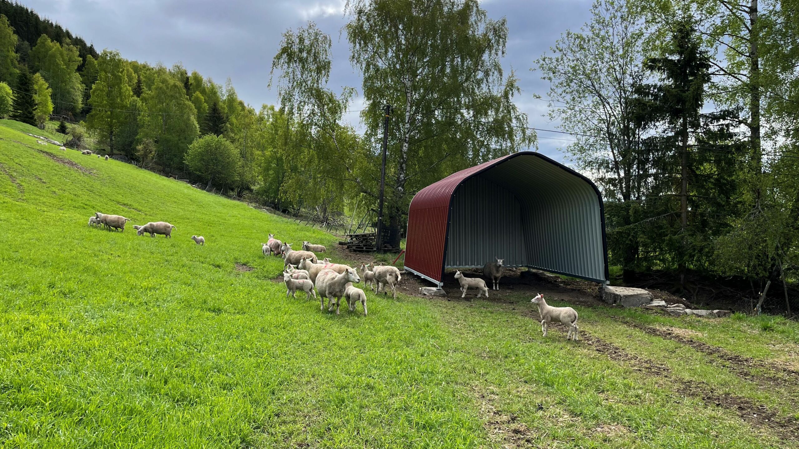 Buehallen leveres komplett med kraftige varmgalvaniserte bunnseksjoner, ferdig bøyde og tilpassede stålplater. Gavlvegg i ene enden. Leveres umontert med komplett boltsett.