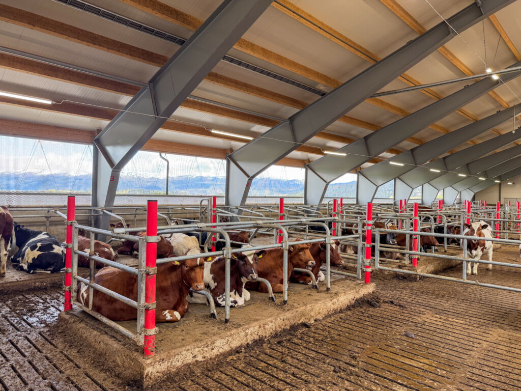 Fjøset, som sto ferdig i desember 2023 og tok imot de første kuene i januar 2024, er designet med fokus på enkel drift og høy dyrevelferd. Her finnes romslige halmsenger, spesielt tilpassede «close-up»-grupper for drektige kyr, og en egen kalvingsavdeling som muliggjør at kalven kan gå med kua de første dagene. Denne tilnærmingen, der kalven får gå med moren og råmelken sikres, har vist seg svært vellykket, med kun tre kalver som har måttet plukkes unna moren av totalt 20.