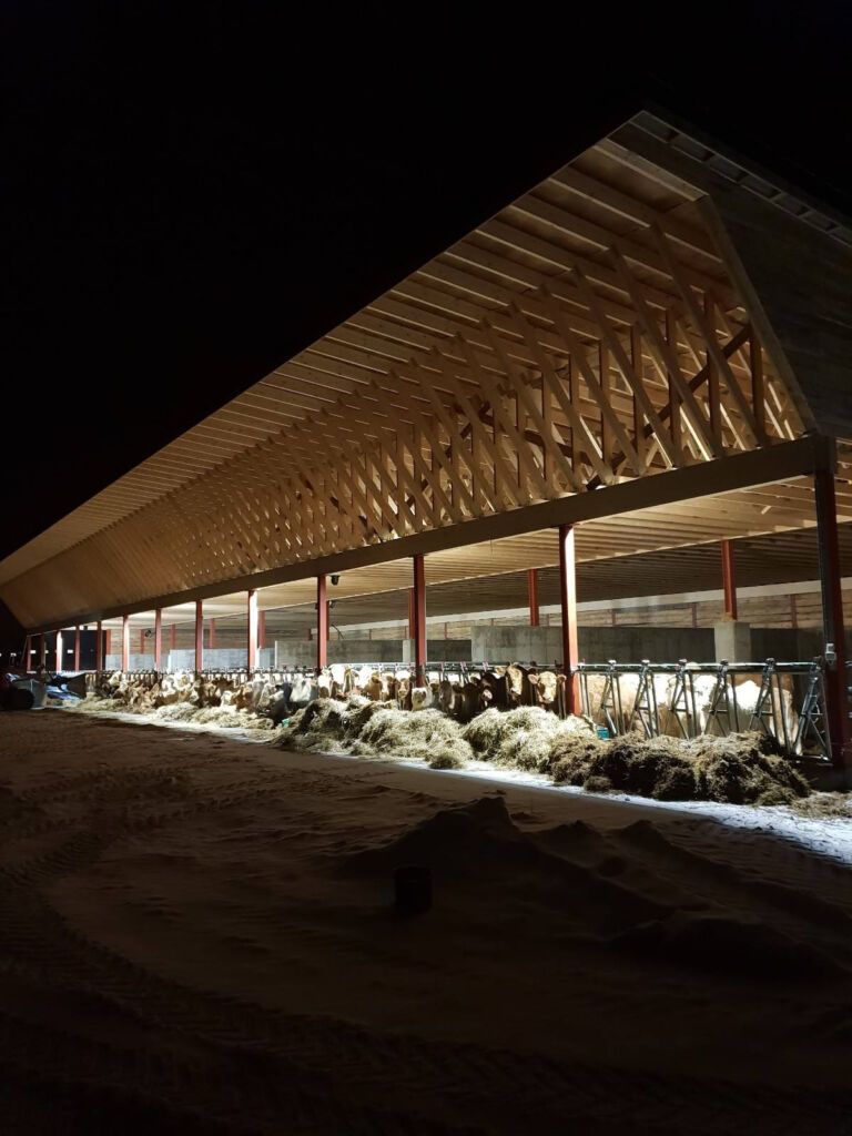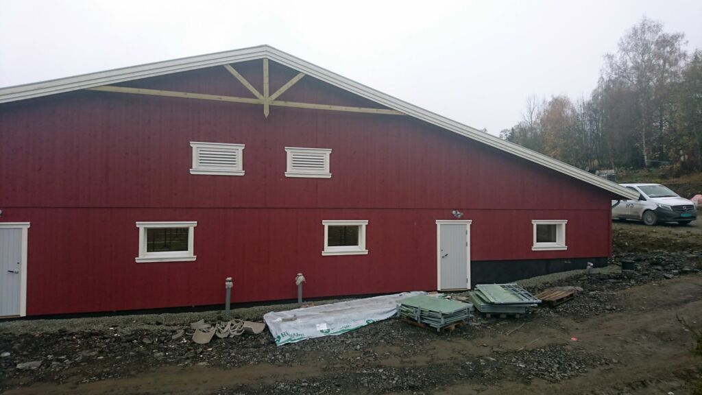 I 2018 hos Niri Lid på Skollenborg i Buskerud var vi med på å levere et fjøs bygg sammen med
