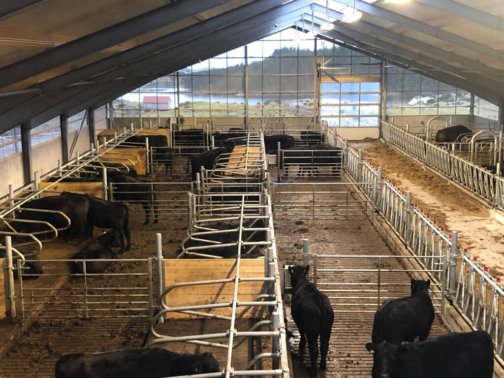 Tom Are på Bokn har flyttet inn besetningen i sitt nye ammekufjøs. Tom driver som avlsbesetning med Aberdeen Angus, og