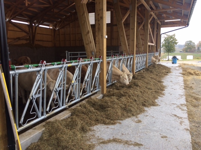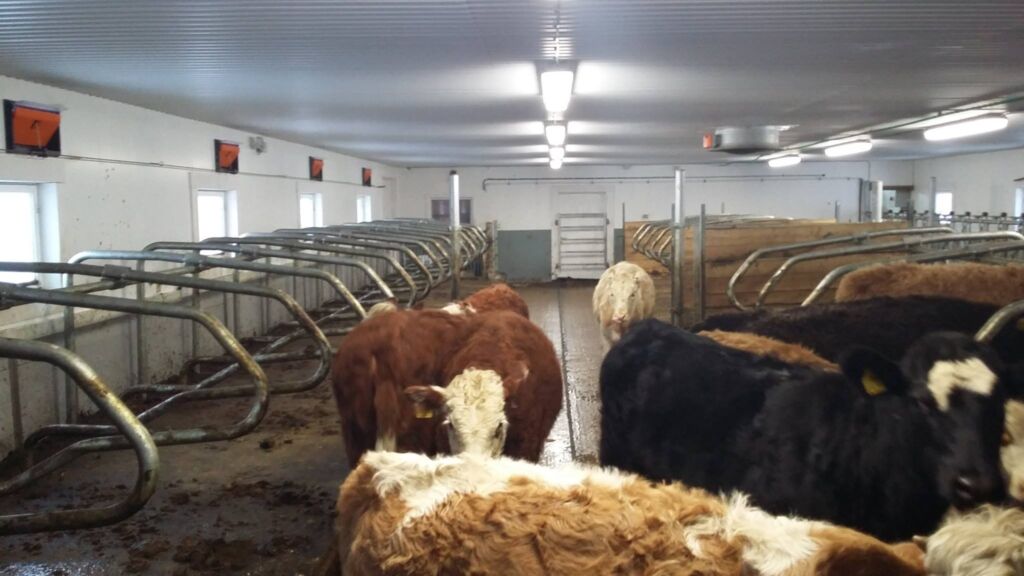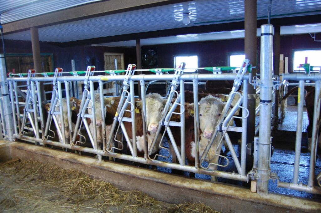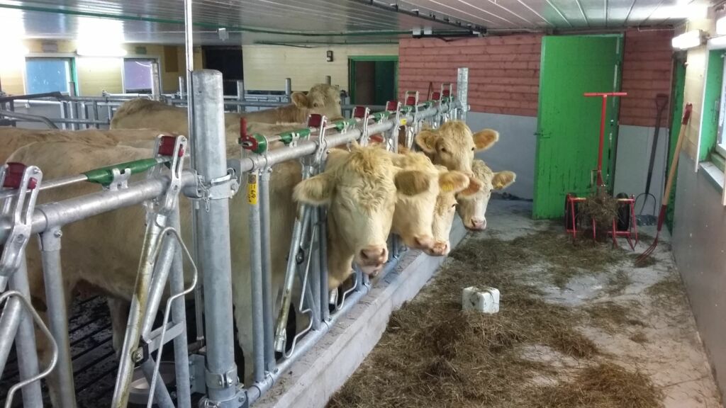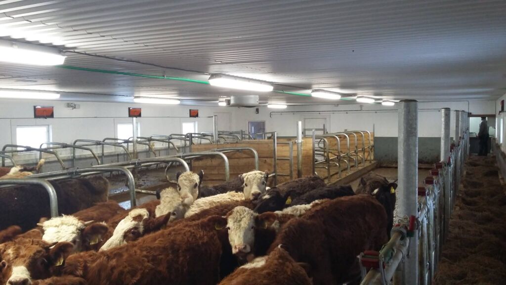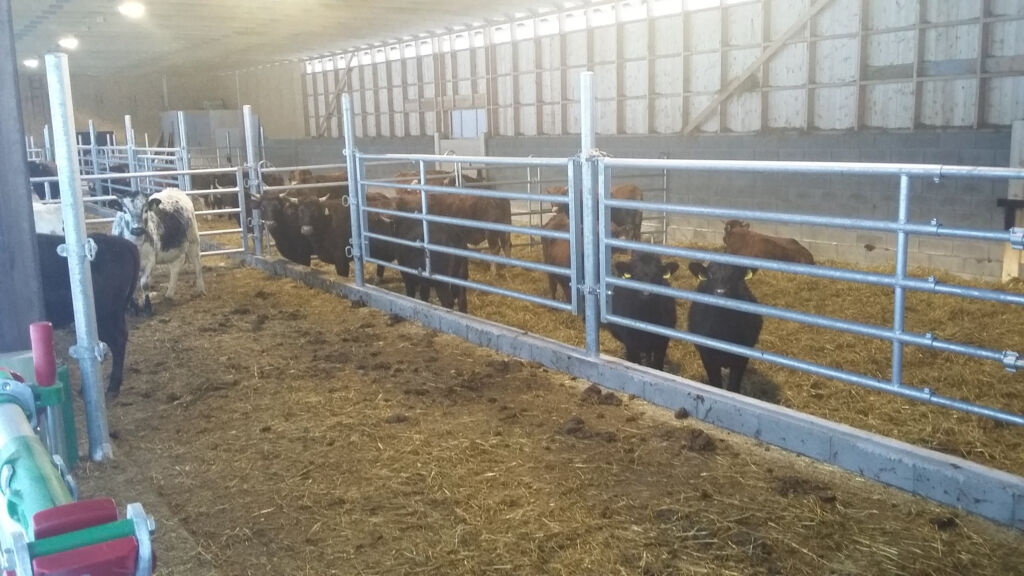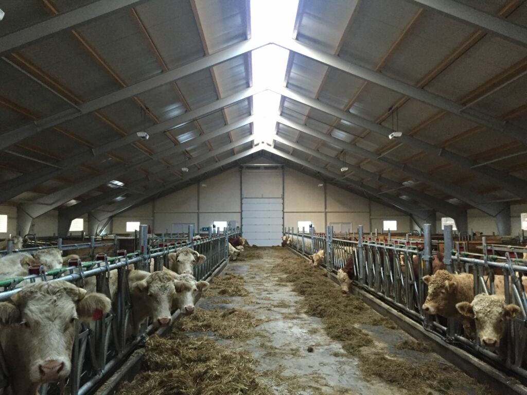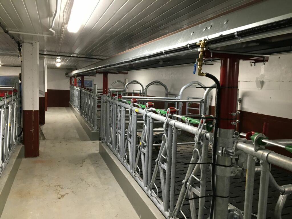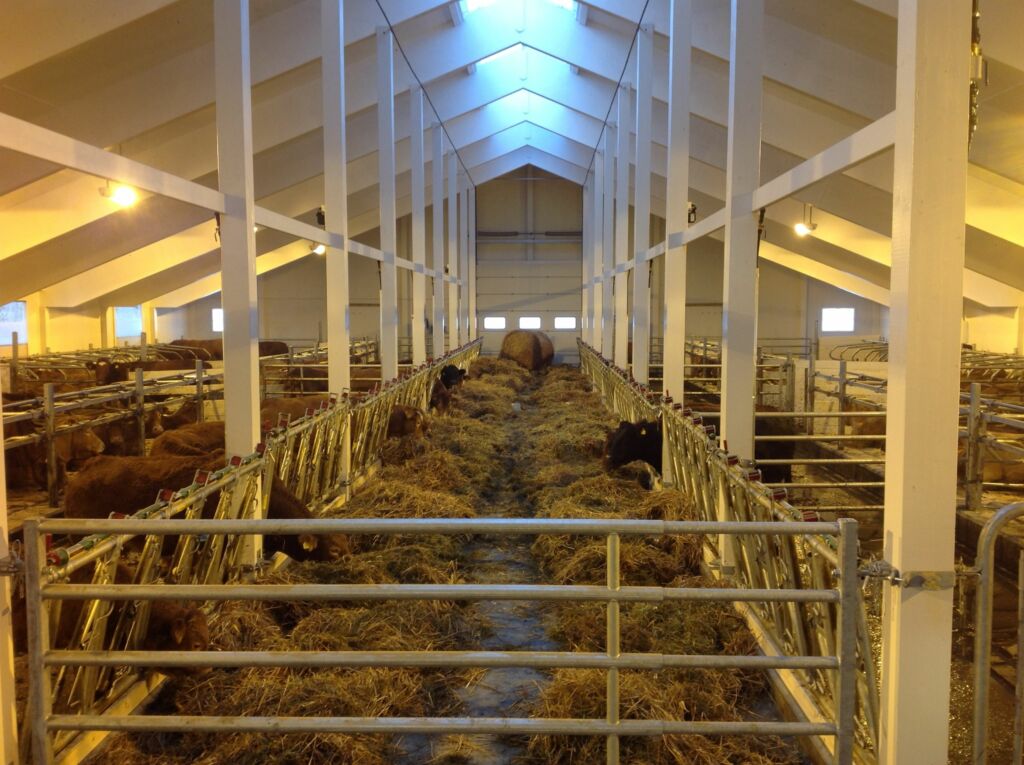Ombygd grisehus til okser og kviger hos familien Jamne i Presfoss. Fjøssystemer har levert i-mek. Fjøset har to lange fôrbrett