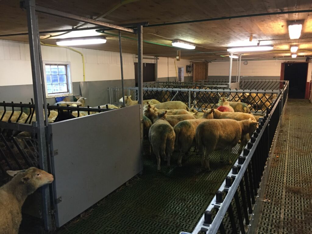 Renovert og ominnredet kufjøs til sau, ca. 150 vfs hos Marit Svanborg og Vidar Amundstad. Mik plastrister, lammesikker front, bingeskiller,