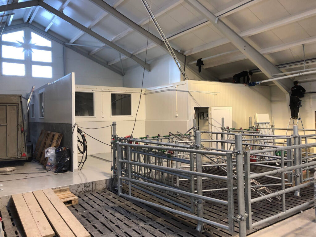 I midten av februar var det sluttmontering og pre-oppstartskontroll i det nye fjøset til Runar Helland. Fjøset er planlagt for