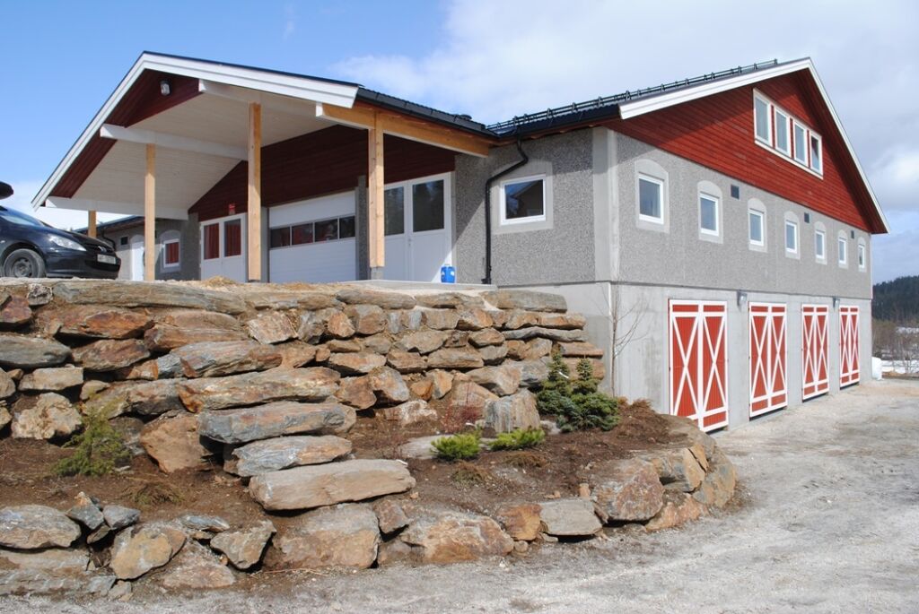 For Kristoffer Modell har vi satt opp et flerbruksbygg med tre garasjeporter.