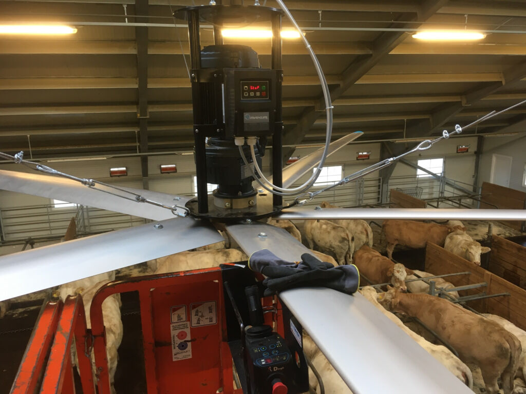 Vi har levert og montert bigairfan fra Secco til Gunnar Myrvang på Trønes, Koppang. Viftene er 8 meter i diameter